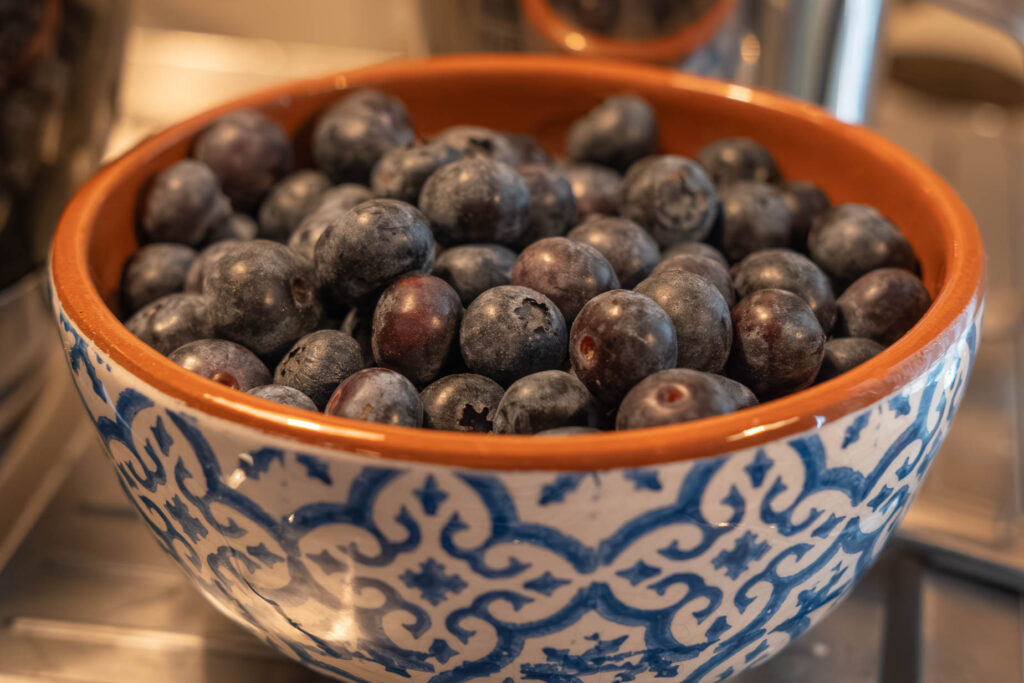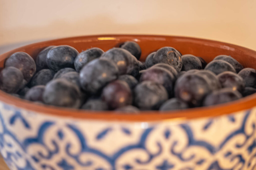 Skålen med blåbären, så fin. Mönstret fick mig att tänka på kakel.