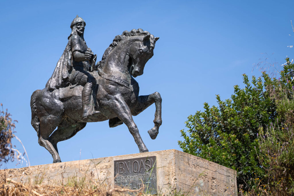 Utanför borgen står en staty där Abu al-Qasim ibn Qasi sitter till häst