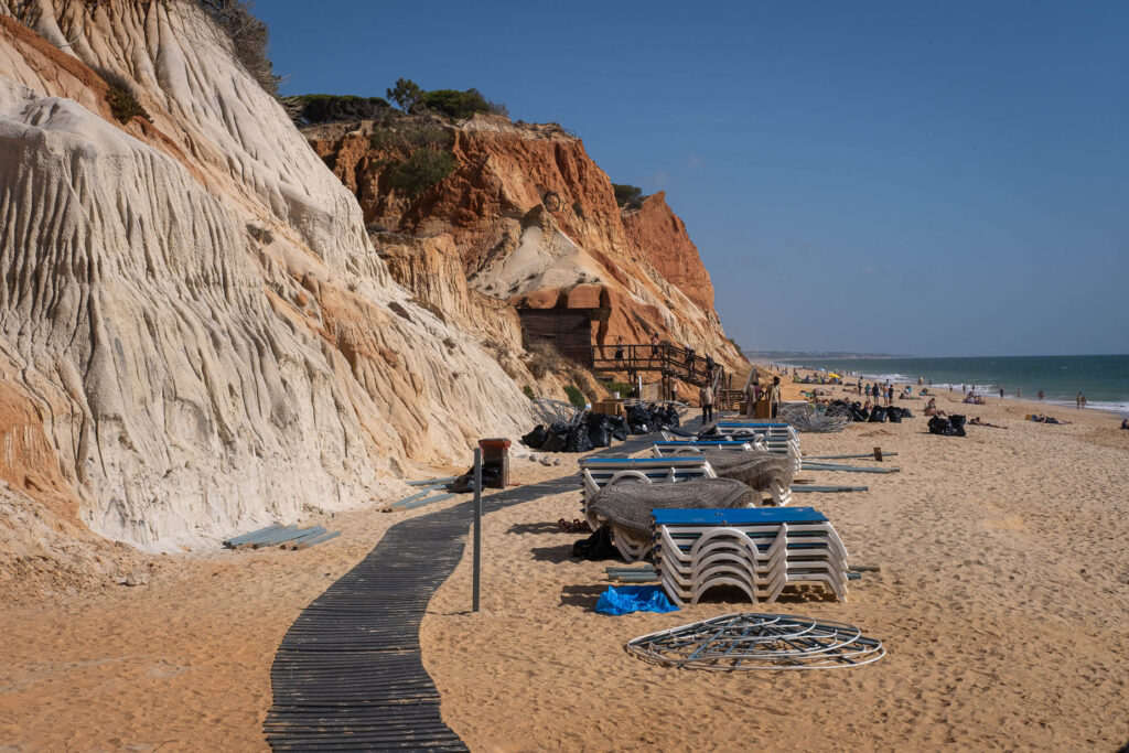 Nere på stranden är säsongen bevisligen över, solstolar och parasoller bars bort, uppför de långa och branta trätrapporna.