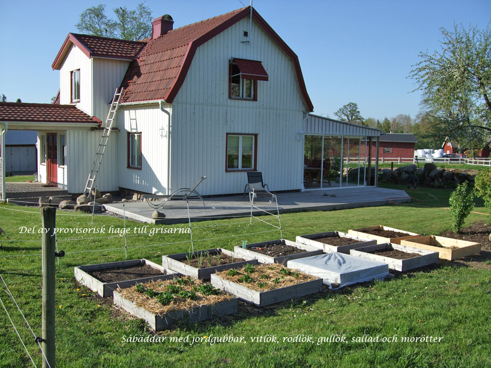 Och vilken härlig trädgård, och fin veranda, och fina grisar! Har ni renoverat mycket på huset? Det är verkligen jättefint! (och hur går det med sovrummet?)